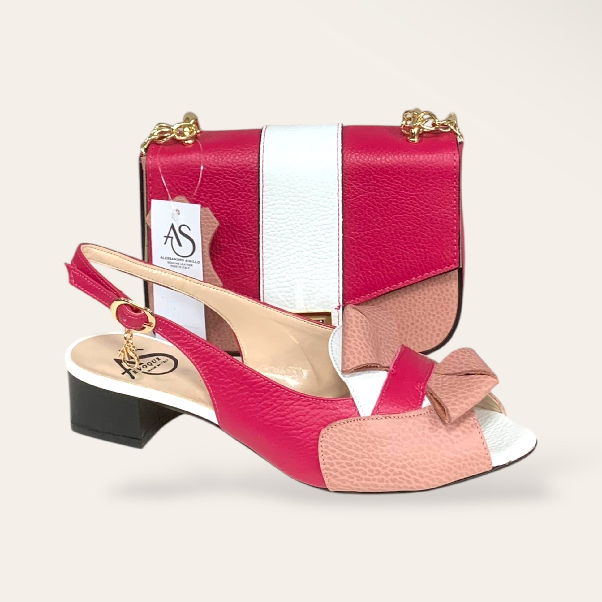 with real leather mixed with other materials.