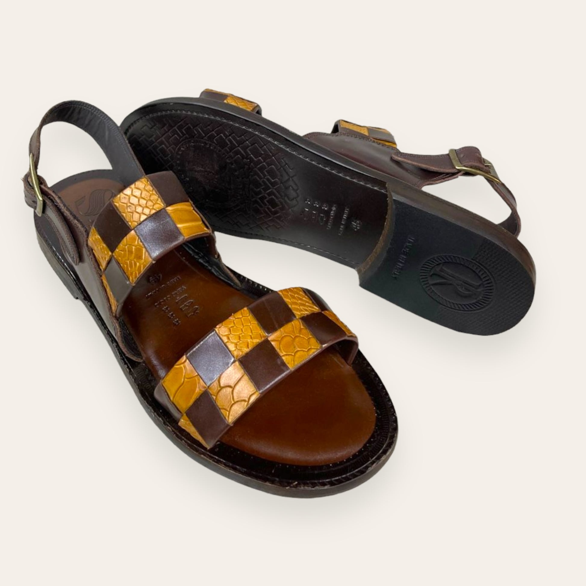 with real leather mixed with other materials.