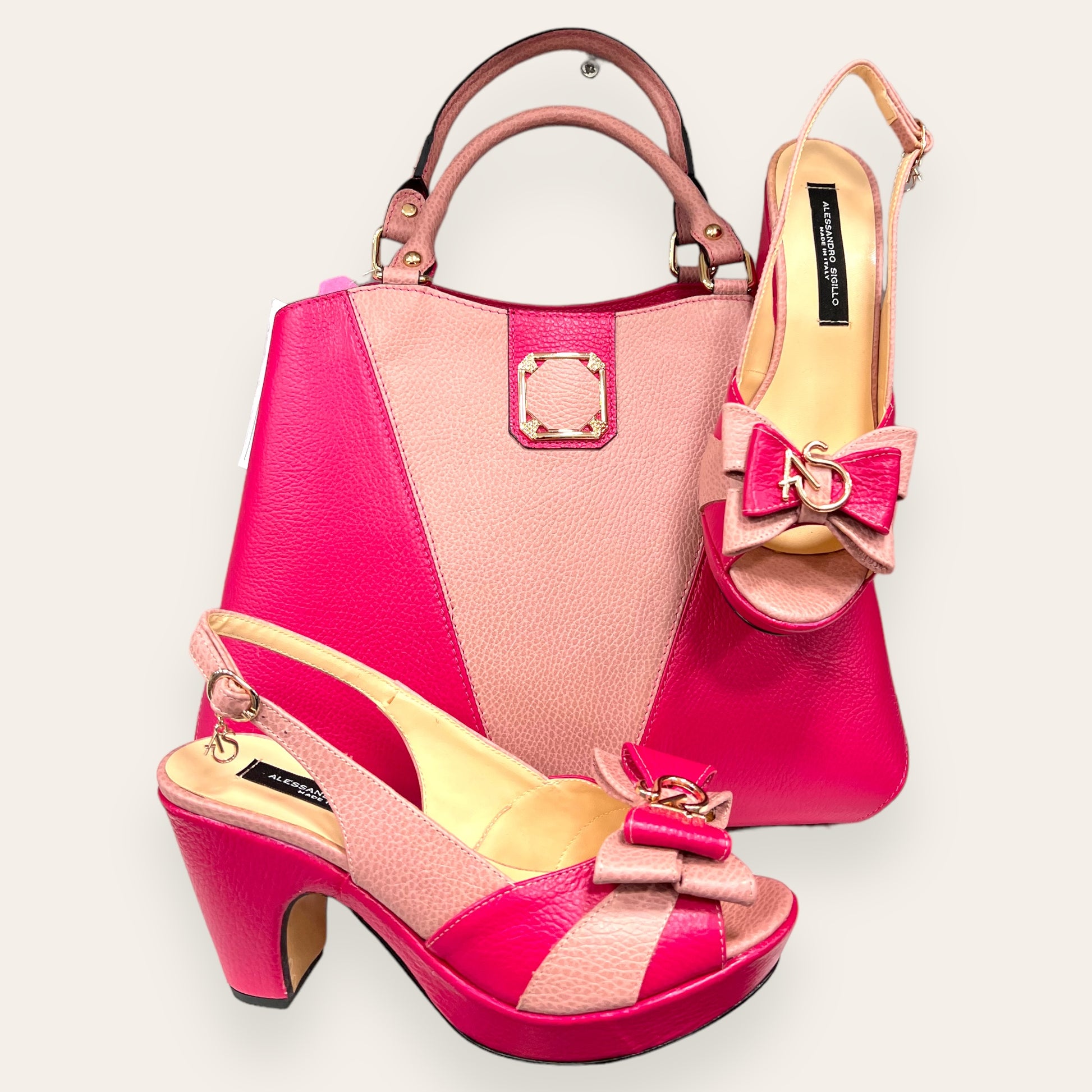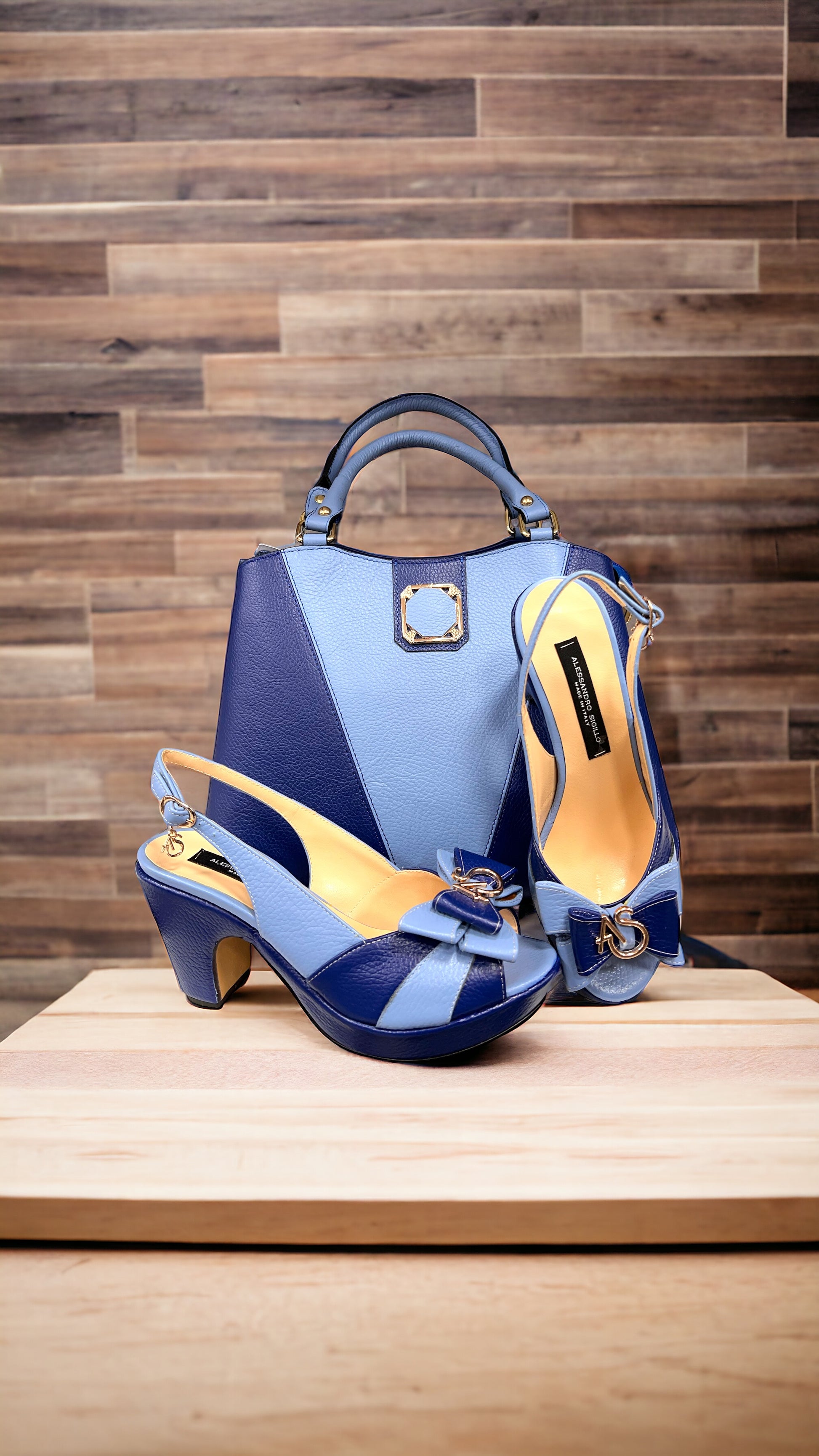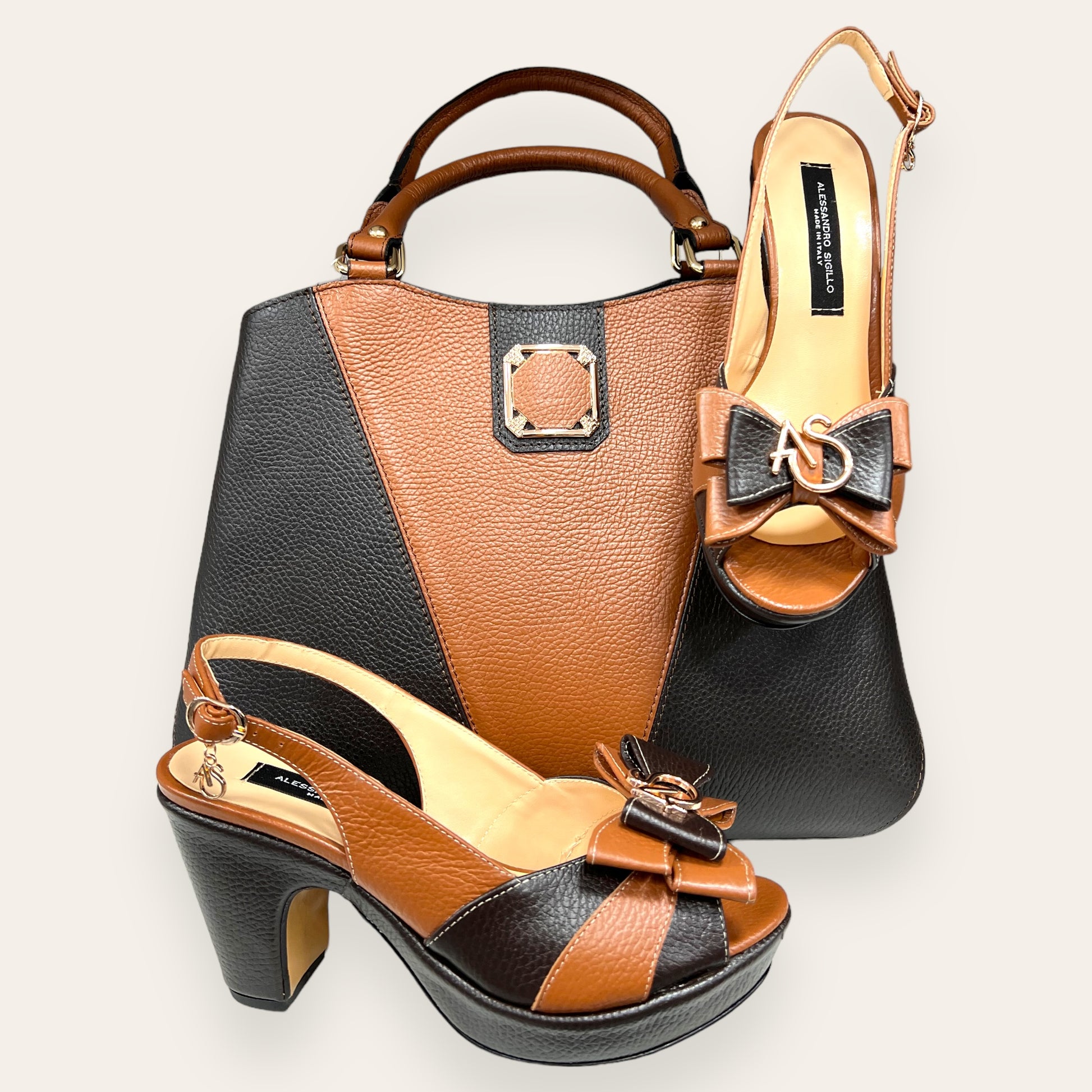 with real leather mixed with other materials.
