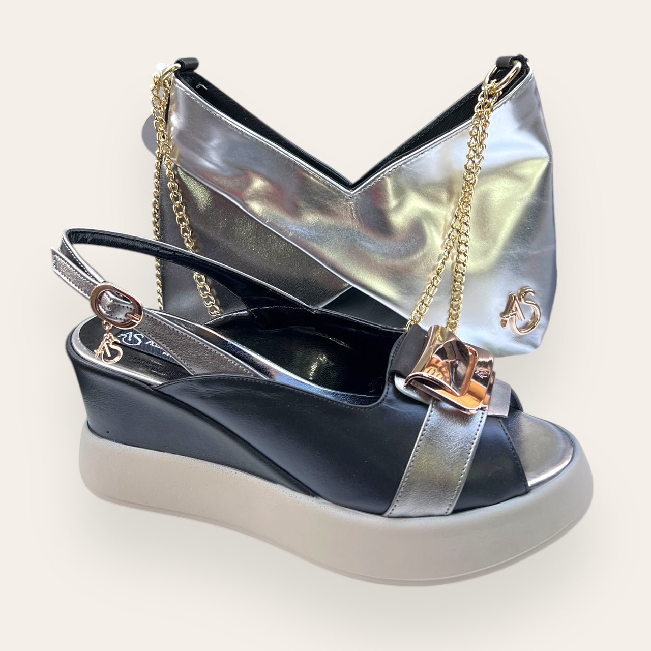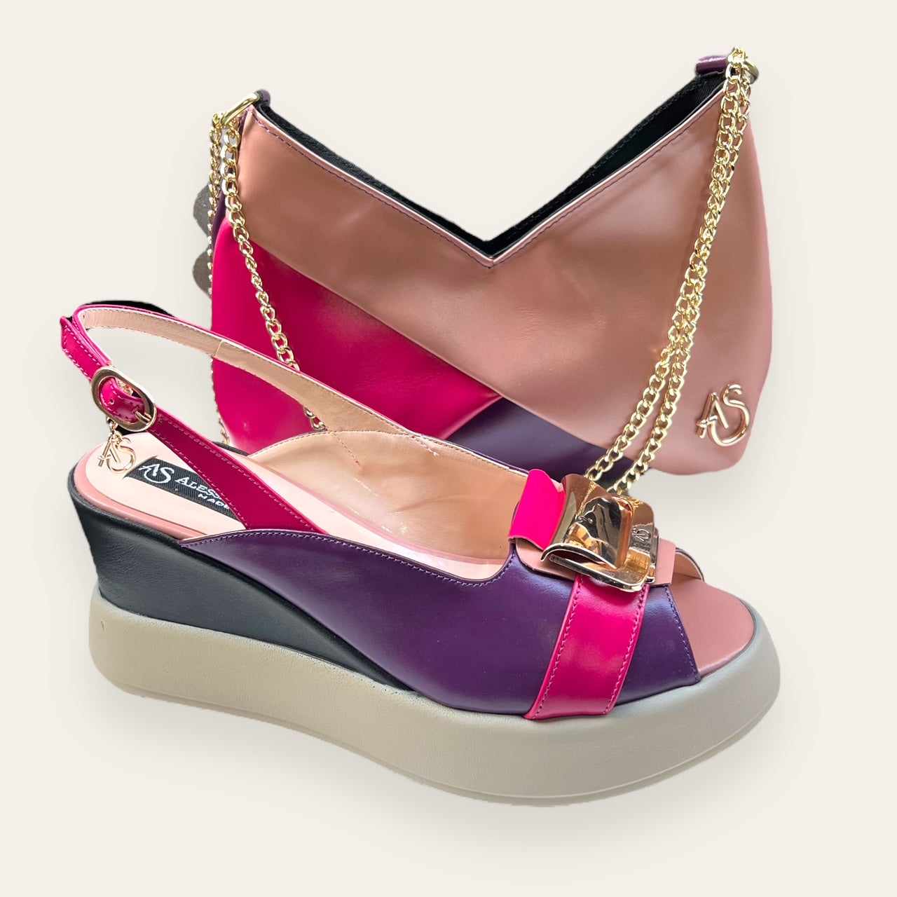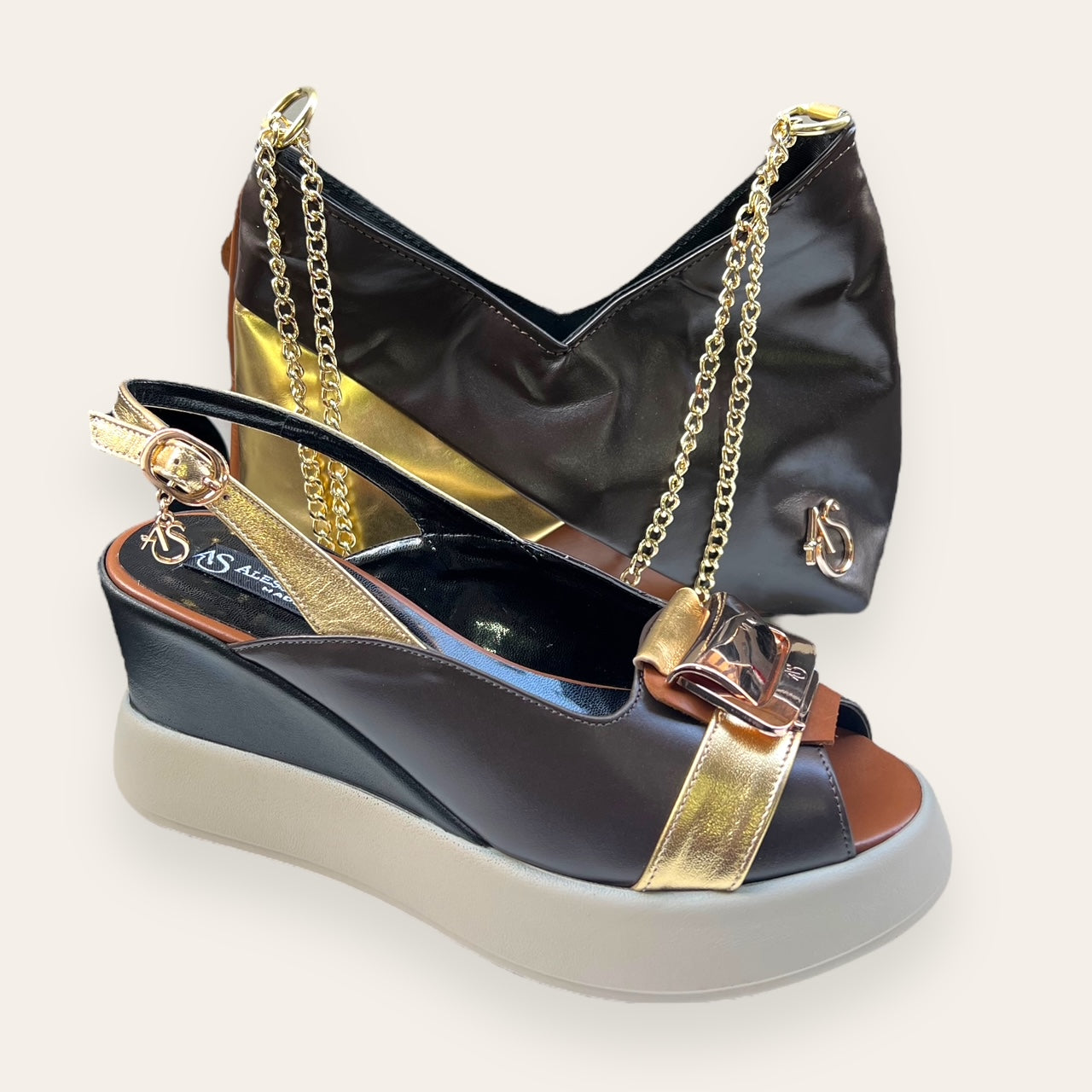 with real leather mixed with other materials.