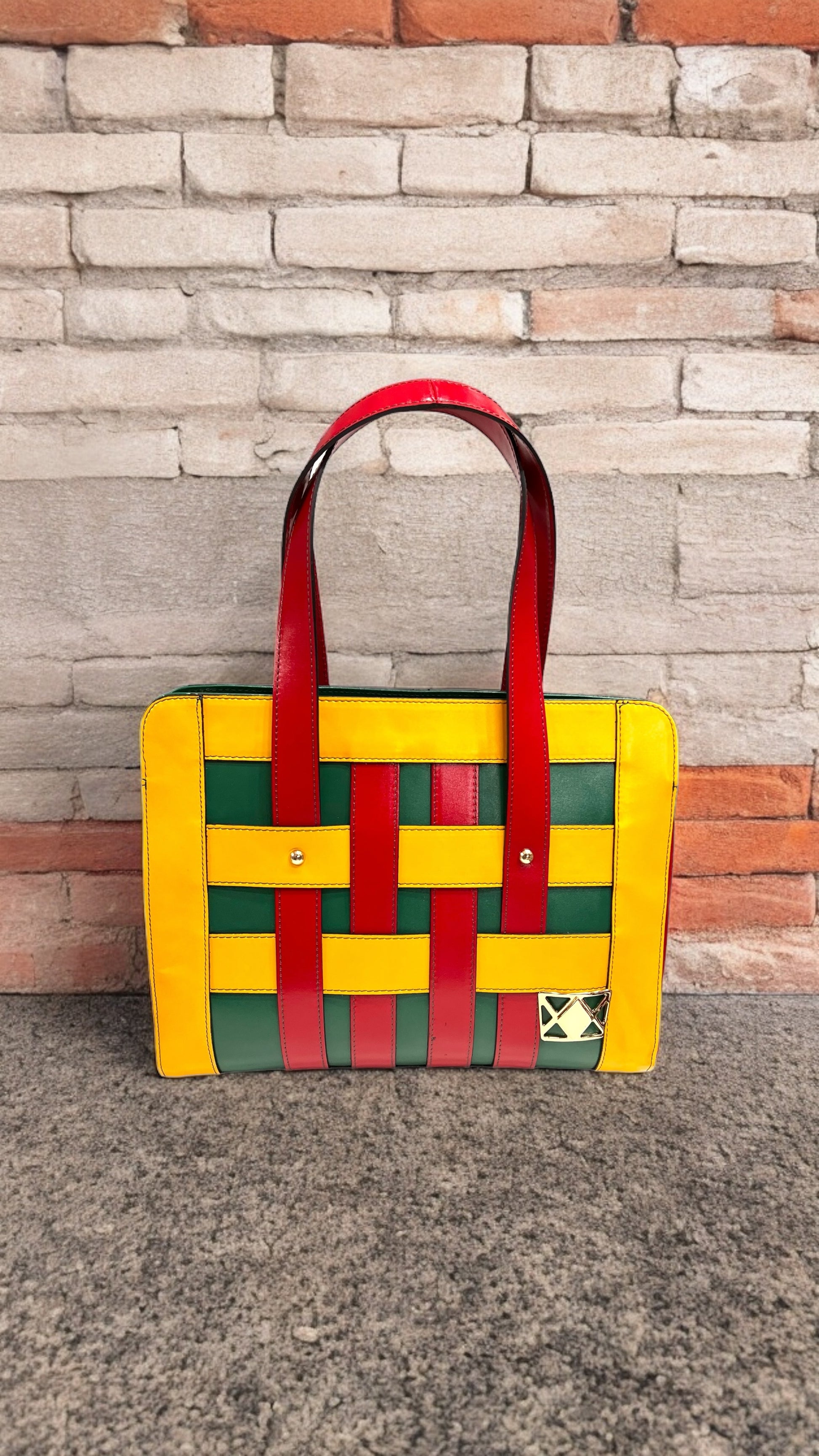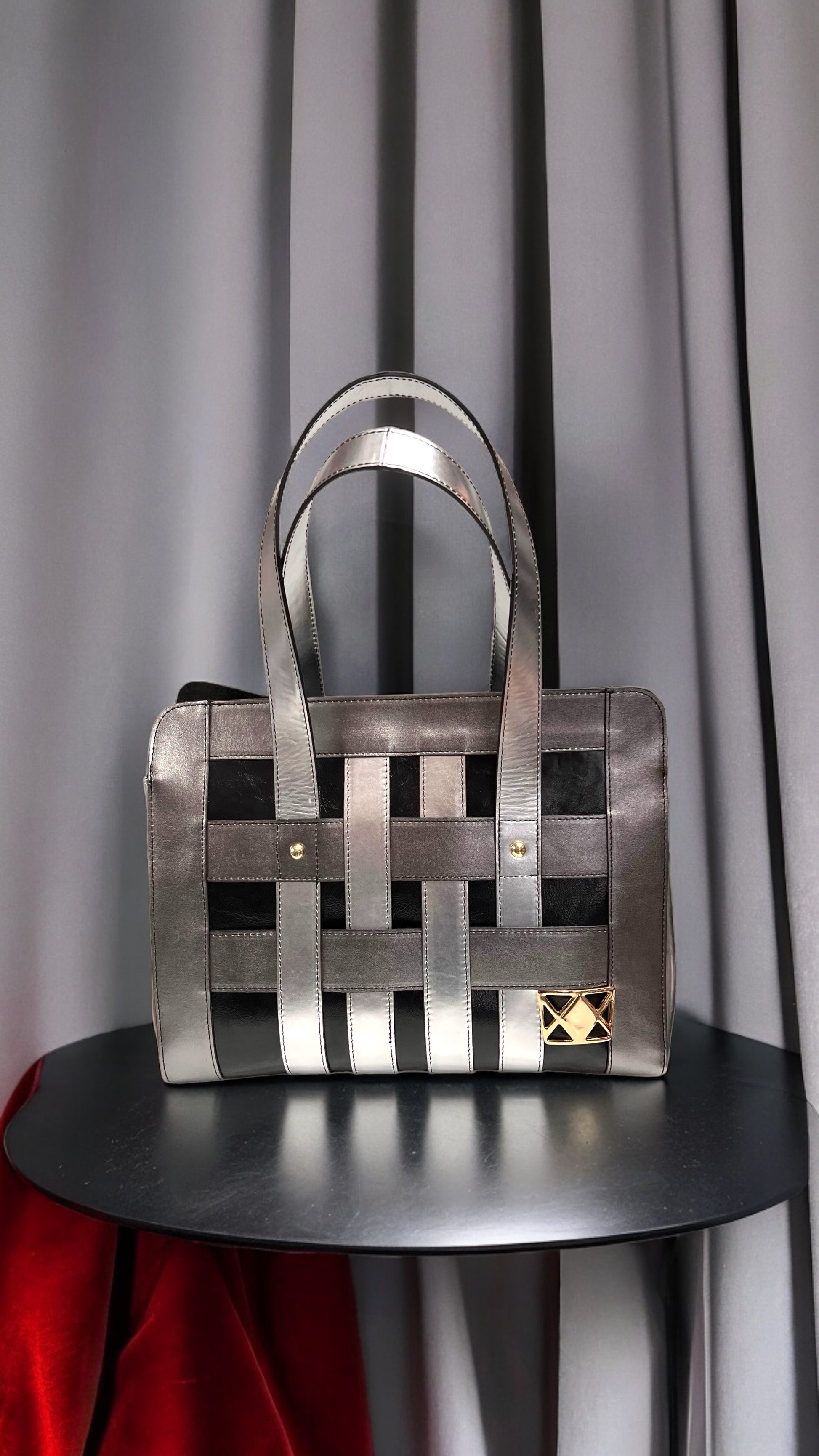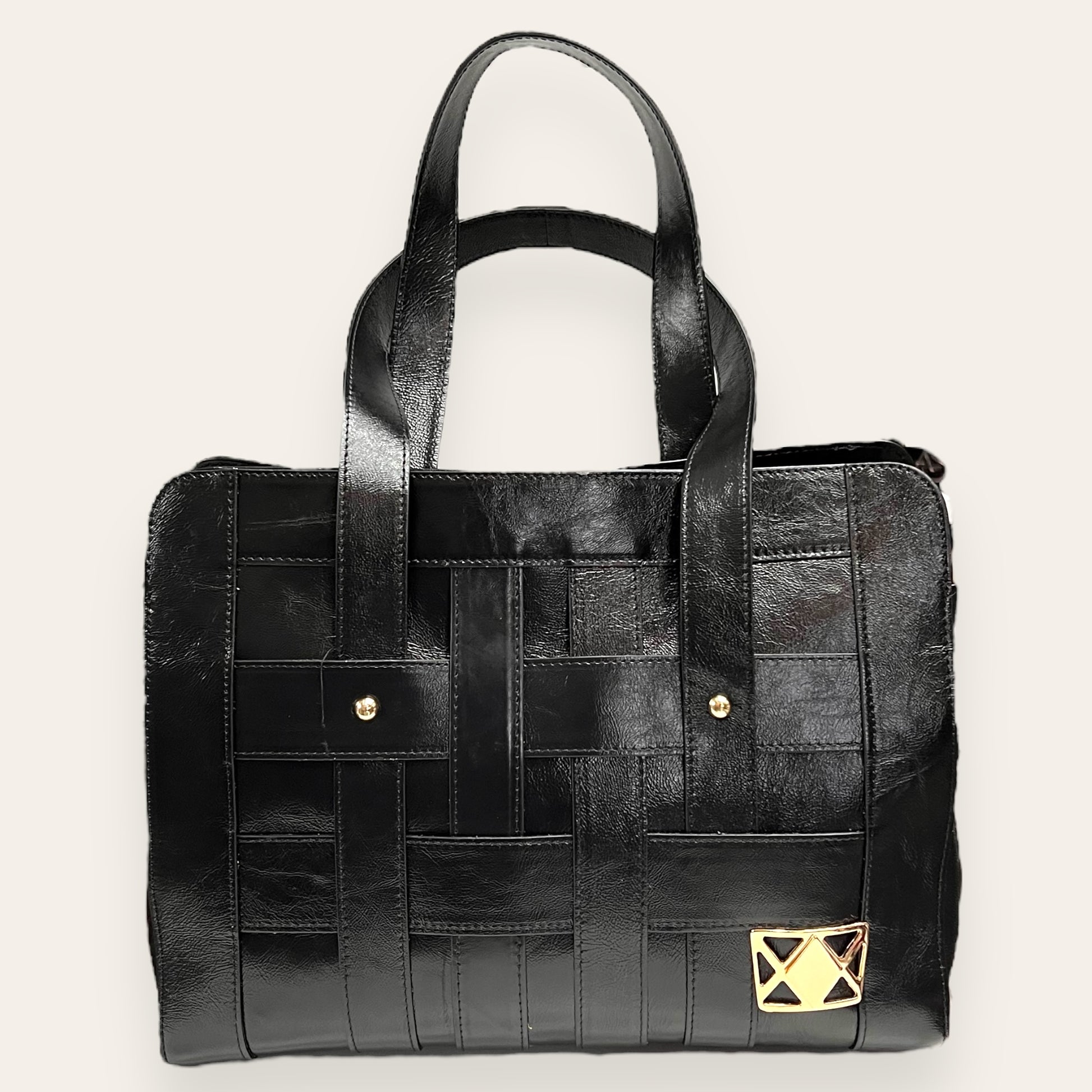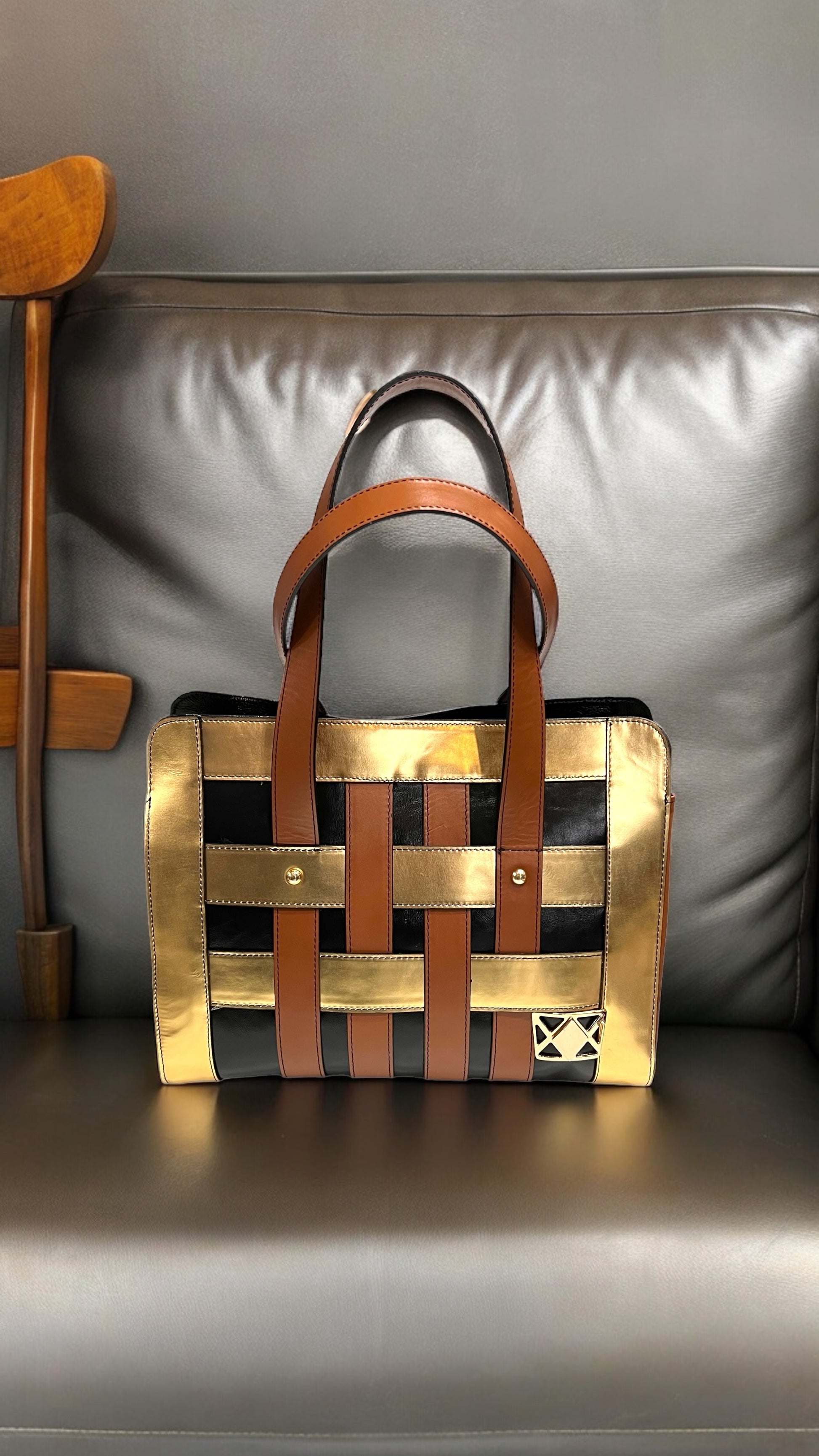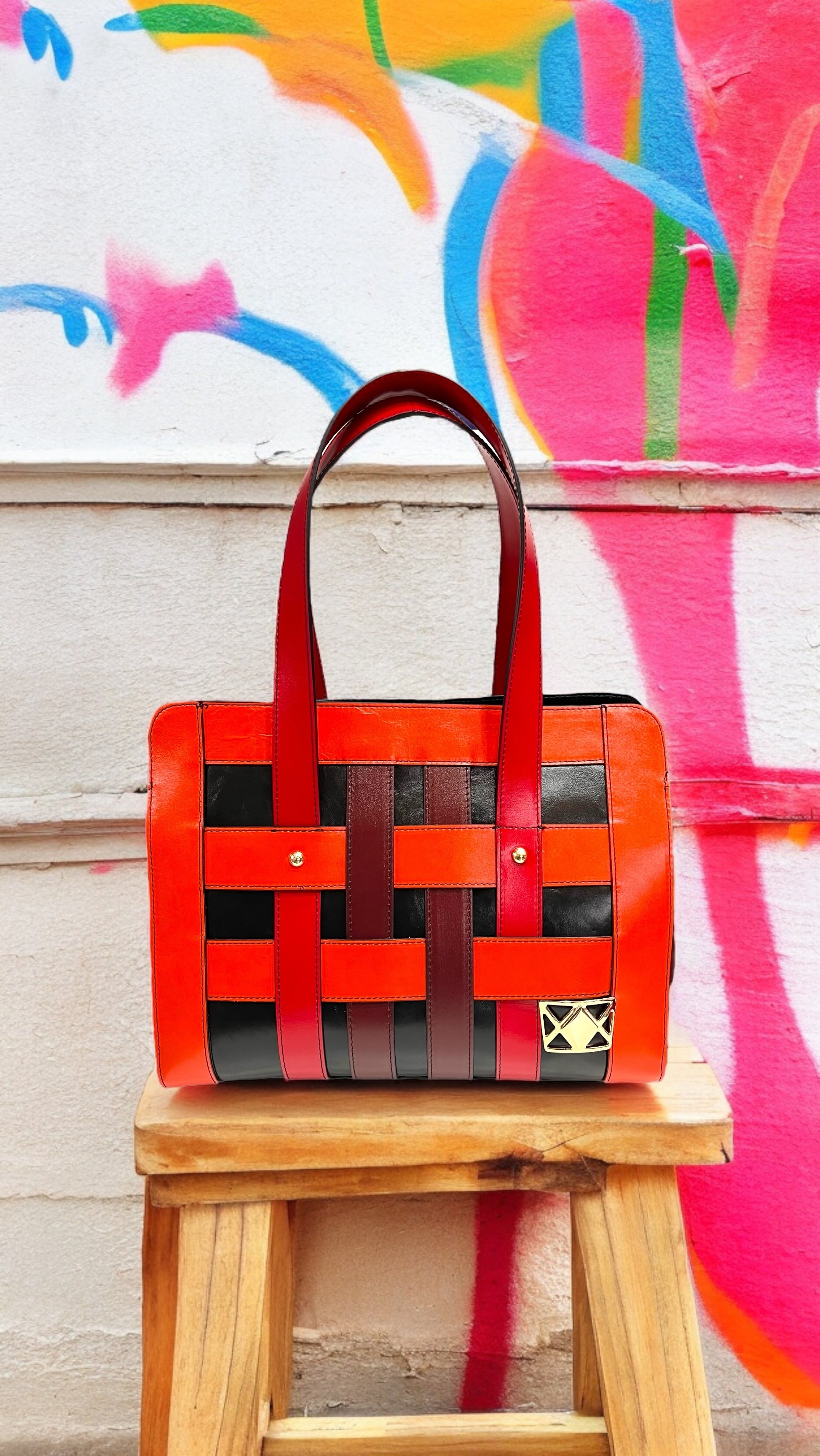 with real leather mixed with other materials.