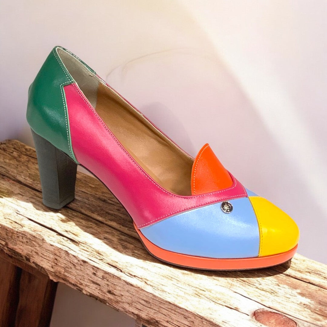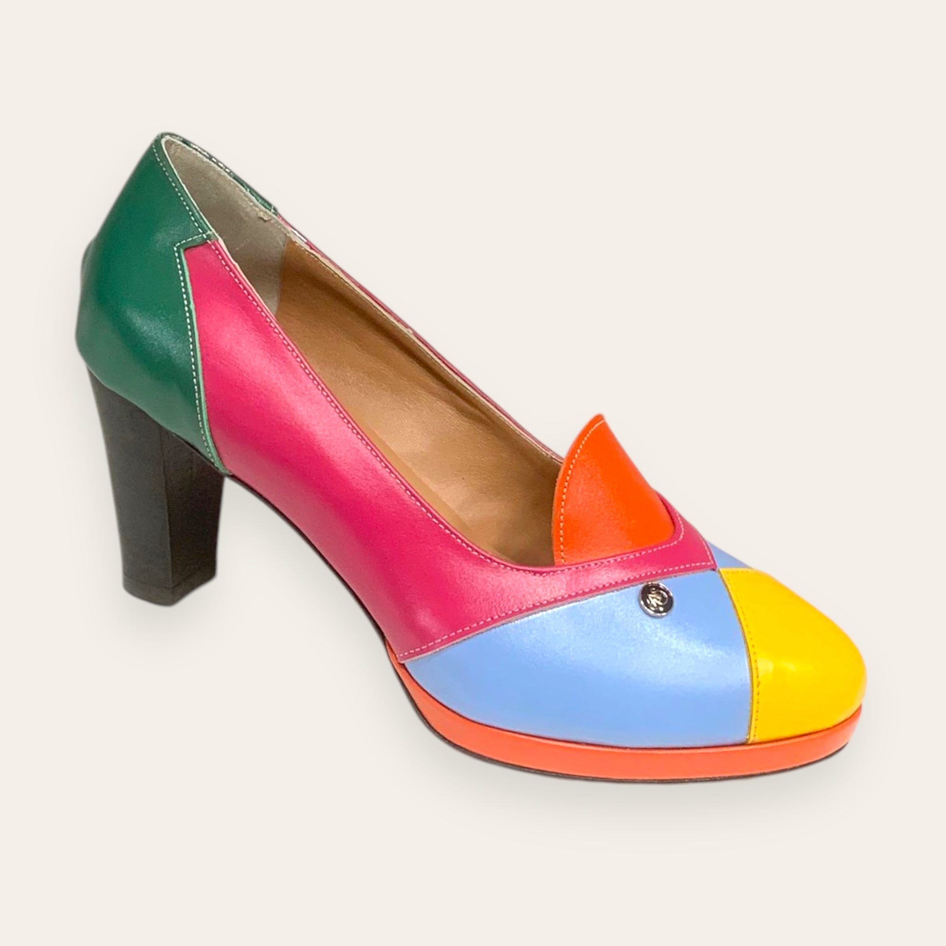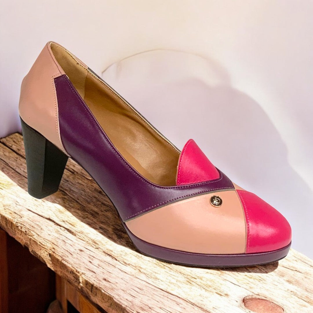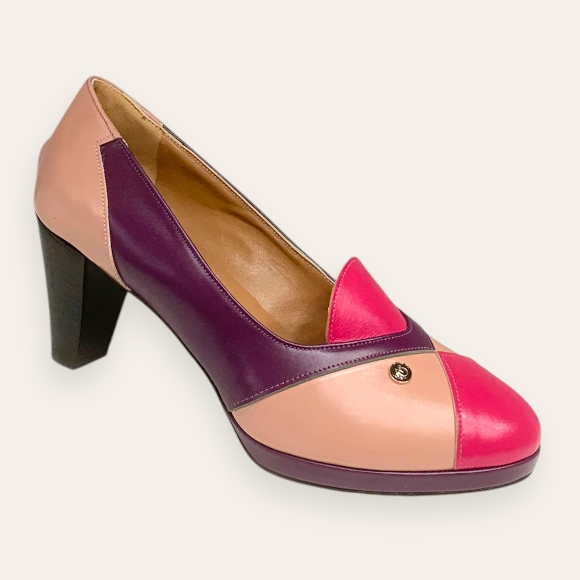 with real leather mixed with other materials.